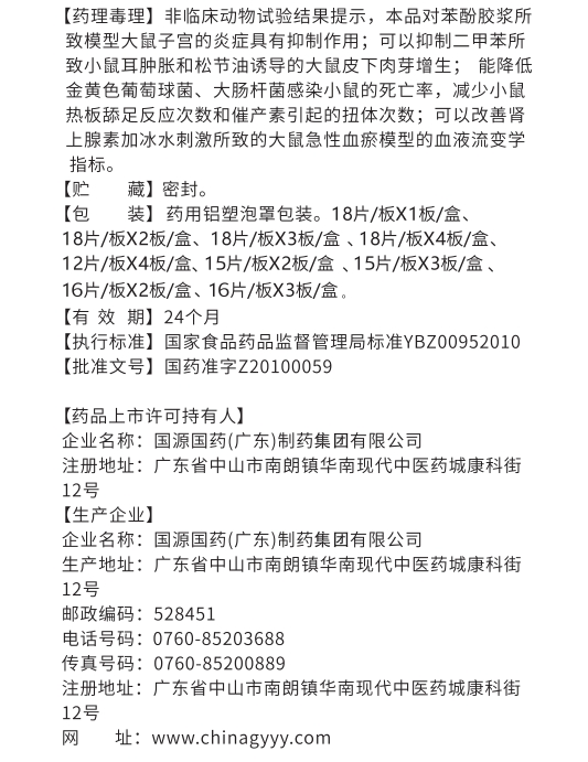 清熱利濕,解毒化瘀,散結止痛。用于濕熱下注,毒瘀互阻所致帶下病。癥見帶下量多、色黃、氣臭,少腹痛、腰骶痛,口苦咽干;慢性盆腔炎、細菌性陰道病見上述證候者。