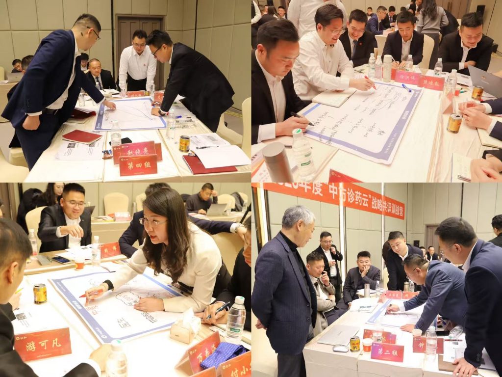 為期兩天的訓戰營以“共創共識”為主線,采用案例研討、小組競賽、團隊共創等多種形式,圍繞“中方診藥云”的客戶細分、價值主張、渠道通路、客戶關系、關鍵活動、核心資源及盈利模式等核心模塊展開深入探討。