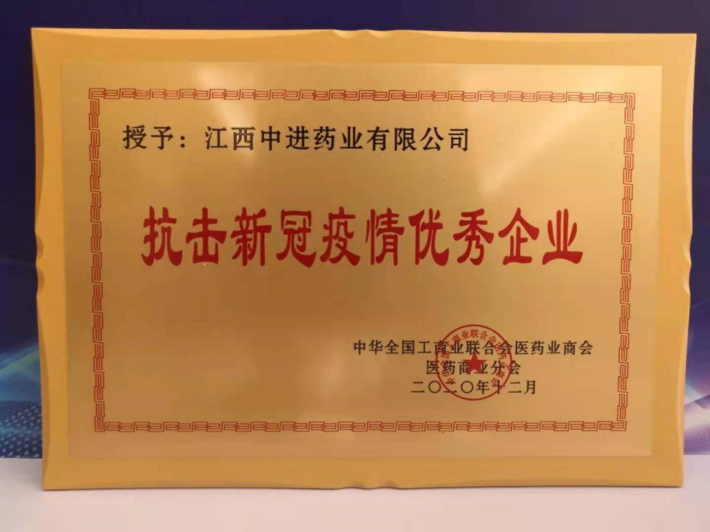 中進藥業喜獲“抗擊新冠疫情優秀企業”殊榮