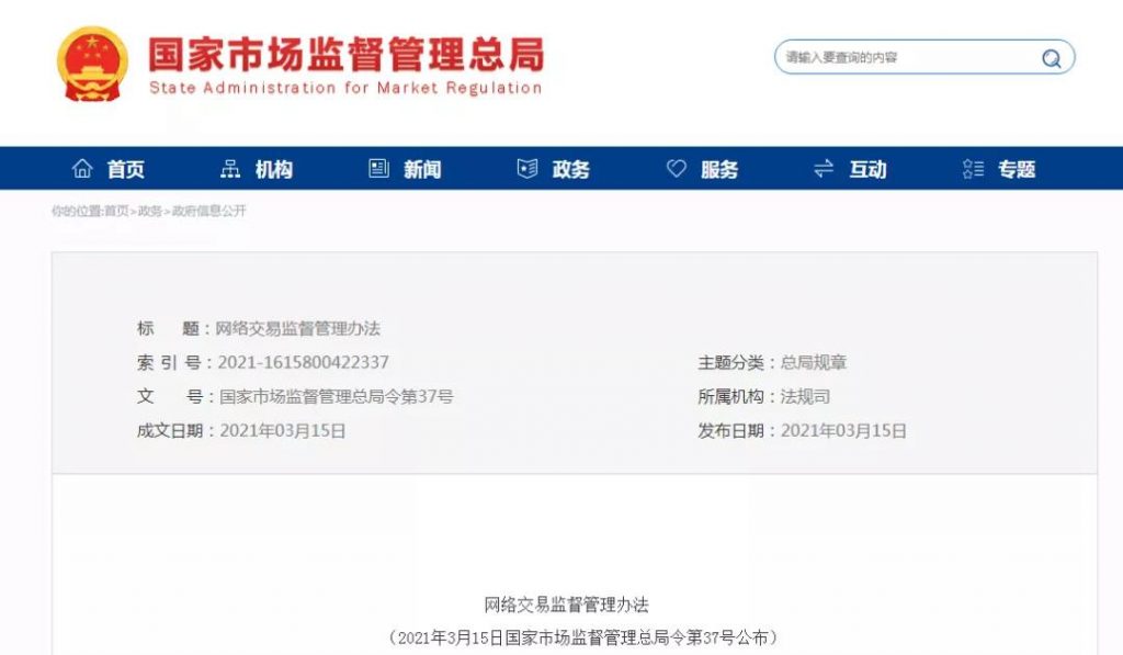 當前位置:網站首頁 新聞資訊 行業資訊 注意!5月1日,《網絡交易監督管理辦法》正式施行