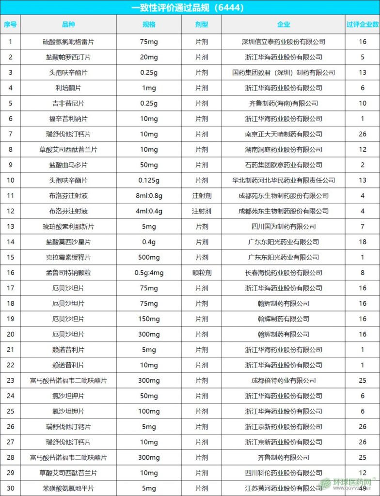最新通過一致性評價名單來了!