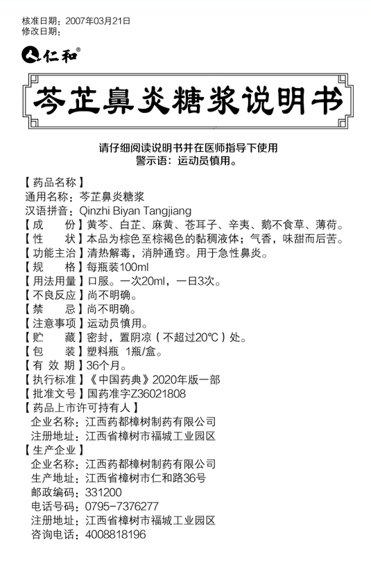 芩芷鼻炎糖漿100ml