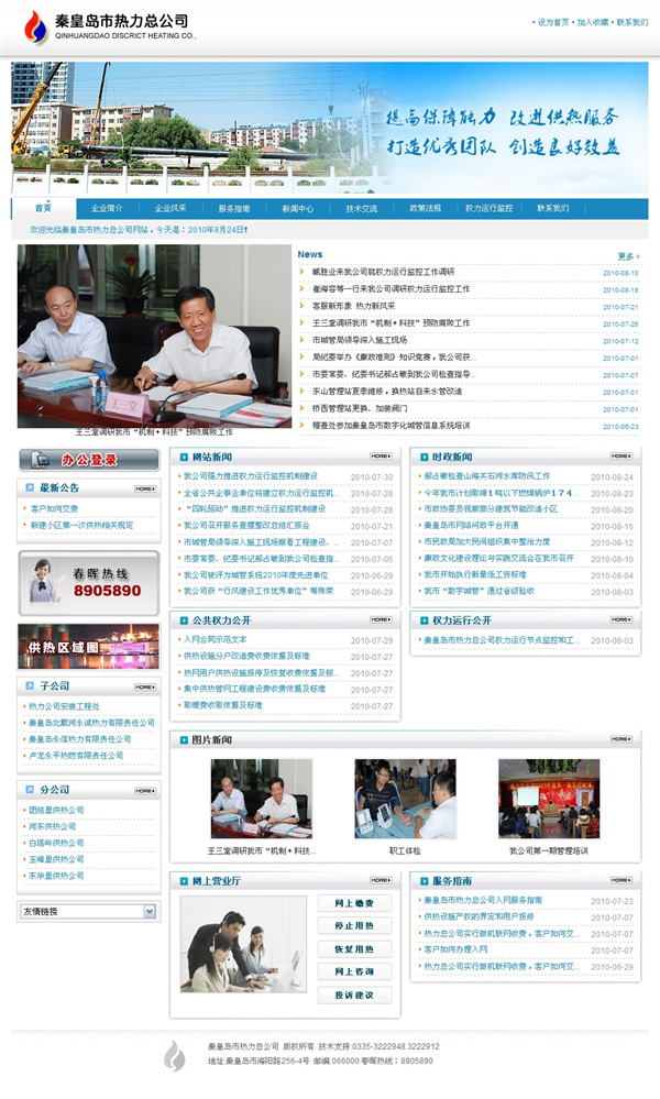 秦皇島市熱力總公司成立于1987年9月,隸屬于秦皇島市城市管理局,公司注冊(cè)資金1億元,企業(yè)總資產(chǎn)達(dá)到10億元,年收入3億元,職工千余人,其中專業(yè)技術(shù)人員200余人,是以供熱生產(chǎn)為主,供熱工程、市政公用工程施工等為輔的國(guó)有獨(dú)資供熱企業(yè)。